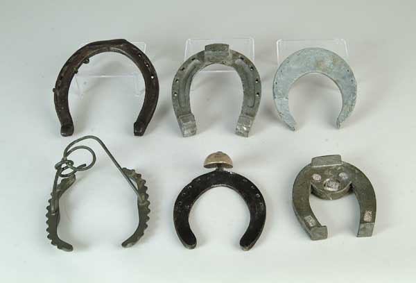 PATENT MODEL: GROUPING OF SIX Five various models of horseshoes, each slightly different. CONDITION: Good. Also includes a horseshoe related item. CONDITION: Good. 1-424 (300-400) Auction: Advertising, Toy & Doll - Spring 2003 Please Note: All prices include the hammer price plus the buyer’s premium, which is paid by the buyer as part of the purchase price. The prices noted here after the auction are considered unofficial and do not become official until after the 46th day. |