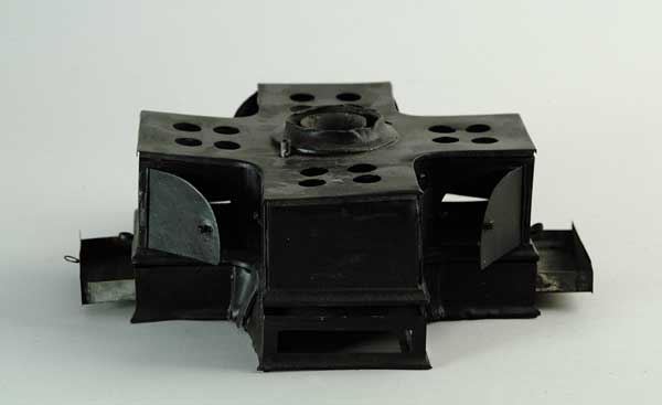PATENT MODEL: FOUR SIDED COOKING STOVE Mostly tin model painted black being shaped like a big plus sign with various doors and drawers throughout and holes in the top. SIZE: 3-1/2″ h x 8” w x 8” d. CONDITION: Good. Possibly two drawers missing. 1-427 (300-500) Auction: Advertising, Toy & Doll - Spring 2003 Please Note: All prices include the hammer price plus the buyer’s premium, which is paid by the buyer as part of the purchase price. The prices noted here after the auction are considered unofficial and do not become official until after the 46th day. |