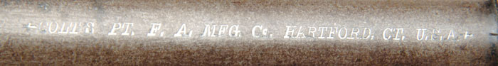ULTRA RARE COLT FIRST 44 CENTERFIRE SINGLE ACTION REVOLVER PRODUCED. Cal. 44 RF Henry/44 WCF (44-40). SN 36026. This revolver has a somewhat long history beginning on April 26, 1877 when it was shipped to Colt’s London Agency for delivery to the Turkish Government for test trials. It seems that Baron Von Oppen, Colt’s European representative, had learned that Winchester was attempting to sell the Turkish Government some 30,000 of their, then available, 44 caliber revolvers. He hurriedly contacted Gen. Franklin, Colt’s Vice President regarding the situation. Gen. Franklin, under the impression that Turkey was using the Winchester Model 1873, had three revolvers, including this one, made up and shipped to the London agency for delivery to Constantinople. This was apparently done in very short order as this revolver has no British proofs indicating it did not stay in England for any length of time. Gen. Franklin’s mistaken belief regarding the caliber of the Turkish rifles led to the modification of this revolver, apparently by a Turkish armorer. He cleverly replaced the orig firing pin with a hook-billed, pointed; flat firing pin retained with a sgl rivet and modified the frame firing pin recess to accommodate this rimfire adaptation. It is readily apparent in looking into the chambers that this revolver was fired innumerable times using the much shorter 44 rimfire case as there is a ring in each chamber at precisely the correct distance to where the mouth of the rimfire case would have been. The areas forward of the ring & face of cylinder have heavy fine pitting, a further indication of heavy use by these corrosive cartridges. The orig first type ejector rod housing was apparently lost or damaged and replaced with a later second type stud mounted into the orig screw hole in bbl. Unfortunately the person doing this work was not an accomplished gunsmith as the stud extends into the bore. Had it been fired after installation it would have blown the stud back out of the hole. It still retains its orig bullseye ejector rod head. This revolver is described as having a standard 7-1/2” bbl with 1-line “script” address with serifs at each end. The bore has the standard rifling of six wide lands & grooves and was probably intended for one of the early rimfire revolvers. It has the broken die in the “O” of “CO” and on the “A” in “HARTFORD” of the bbl address. It is thought that this address was completely discontinued in the early 20,000 serial range, therefore further supporting the theory that this was a recycled 44 rimfire bbl that Colt was simply disposing of. As it stands, this is on record as probably being the highest serial numbered revolver with a script bbl address. This revolver also has the caliber marking “44 WCF” on left shoulder of trigger guard and has the 1-pc walnut grip. There is a spurious “U.S.” stamp on left side of frame, apparently by some nefarious individual thinking to make this a more valuable piece by making it a martial Colt. Consignor states that he has owned this revolver well over 40 years, having purchased it from an antique dealer at that time. Accompanied by a 3-page Kopec letter detailing most of the above information. Also accompanied by a copy of the Summer 2002 The Rampant Colt magazine in which Mr. Kopec has also written a 3-page article with photograph of this same revolver. Additionally accompanied by a Colt Factory letter identifying this revolver as having been shipped to Colt’s London Agency April 26, 1877 in a shipment of three same type guns. The other two serial numbers are 36327 & 36264. CONDITION: Good, all matching including bbl & cylinder. Traces of orig finish remain in very sheltered areas being mostly a smooth gray/brown patina. Grip is sound showing heavy wear with traces of orig varnish. Buttstrap screw is battered as are the frame screws and the base pin screw. Hammer will not hold on safety or half cock, otherwise mechanics are fine, strong bright bore with fine pitting. 4-60734 JR501 (10,000-20,000)