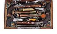 Extraordinary Rare Cased French Set of Exquisite Gold and Silver Embellished Nicholas Noel Boutet Flintlock Pistols. From the collection of the late H.H. Thomas of Kentucky. They carried a presale estimate of $250,000-500,000 and sold for $437,000. |