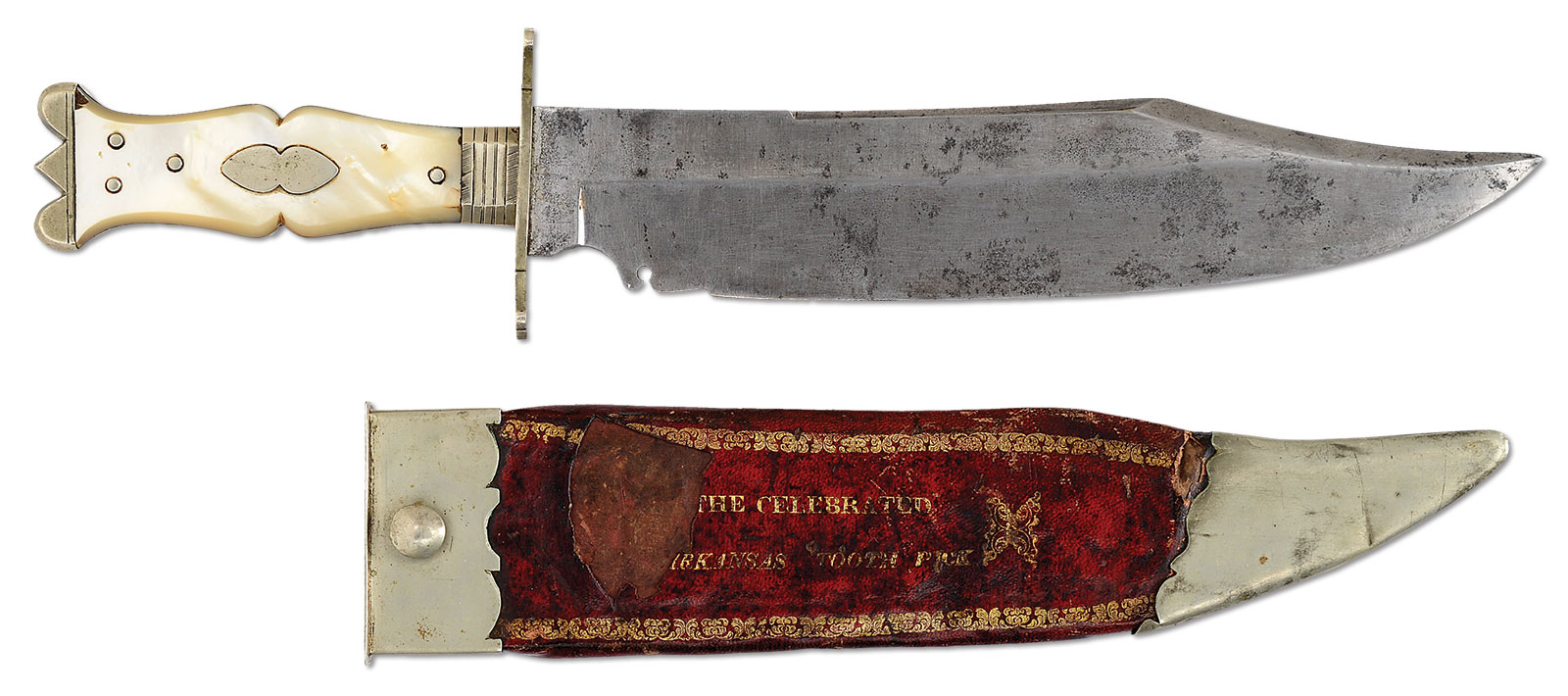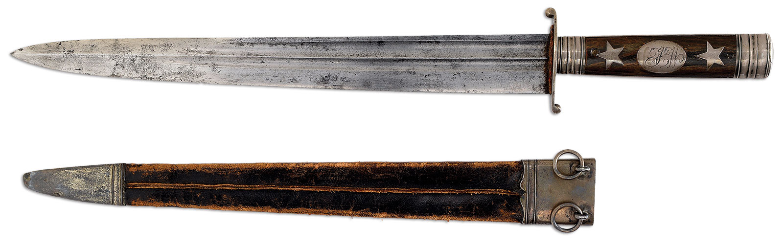 From the Estate Collection of well-known collector, John Ashworth, is an exceptional and unique massive Memphis Novelty Works Confederate “Floating CS” Clip Point Bowie Knife, in fine excellent overall condition, estimated at $30,000-40,000.