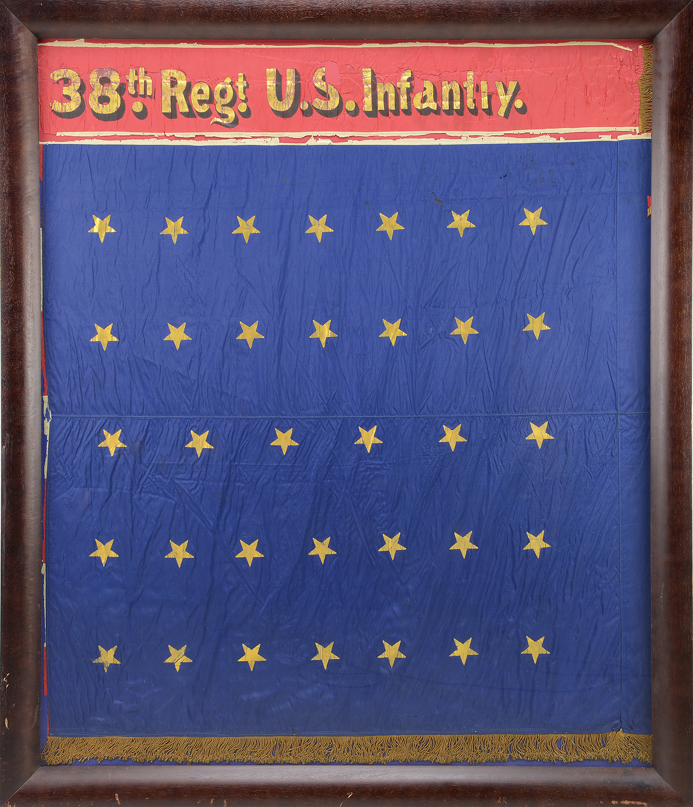 According to John Sexton, Civil War Historian who handled these flags on behalf of James D. Julia, “This collection of Civil War flags is unquestionably the most important group to come to public auction in memory. Just seeing these remarkable articles transports me back a century and half to this turning point in American history. I believe that the 38th U.S. Infantry example is truly among the rarest American flags James Julia auctions will ever offer.”